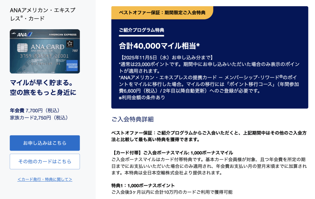 公式サイトよりも多くのポイントを獲得でき、初年度から年会費の元を取ることができます。この記事をきっかけに、ANAアメックスの発行を考えてもらえると嬉しいです。