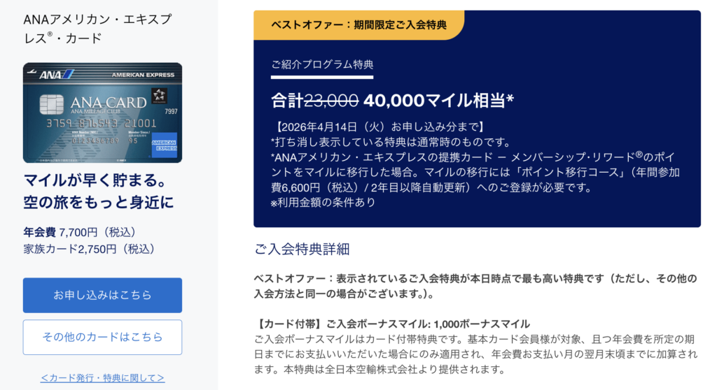 【2026年4月】ANAアメックスのお得な紹介キャンペーン!【40,000マイル】